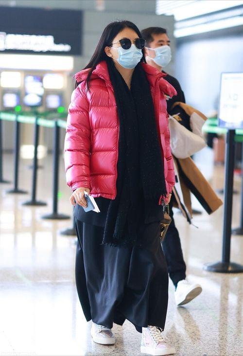 5. 运动风:穿上玫红色羽绒服,搭配运动裤和运动鞋,再戴上一顶运动帽,活力四射。